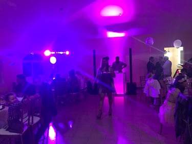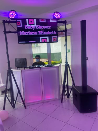 Paquete ideal para eventos formales (Bodas, XV años, Graduaciones) de hasta 150 personas en espacios intermedios que incluye Sonido envolvente 4 bocinas (2 subwoofer y 2 bocinas 15 pulg.) 4 luces estructúrales para matizado del lugar, 2 Truss de 2 Metros matizados con luz led y con una luz minibeam inteligente estructura tipo media portería con 6 luces Led y Láser, máquina de niebla y burbujas (si el lugar lo permite) 1 pantalla Led HD de 55 pulgadas para proyectar visualizaciones, videos, fotografías o karaoke, animación con 75 souvenirs variados según disponibilidad (sombreros, diademas, collares, barras led etc.) Cabina de DJ iluminada, DJ animador profesional con mezclas en vivo de música, videos y karaoke de todo género y época.