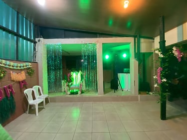 Ideal para eventos con familiares y amigos en casa o salones pequeños con máximo de 50 personas, incluye dos bocinas auto amplificado de 1000 watts, 4 luces led audio rítmicas en pedestal, DJ Animador con música de todo género y época, 1 micrófono.