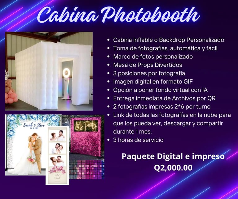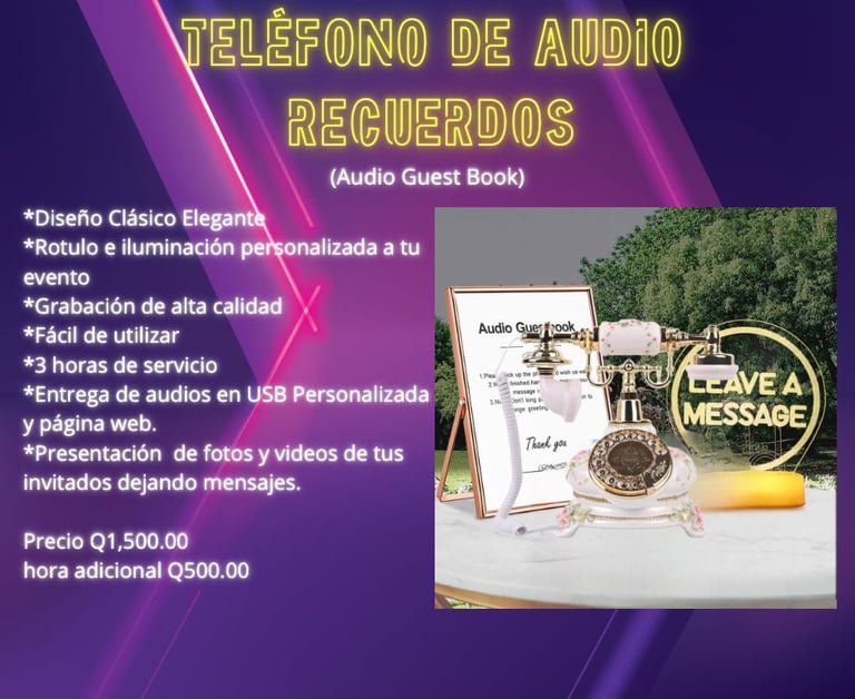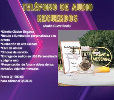 Precio Q 2,3000.00 hasta 5 horas. Hora adicional Q350.00