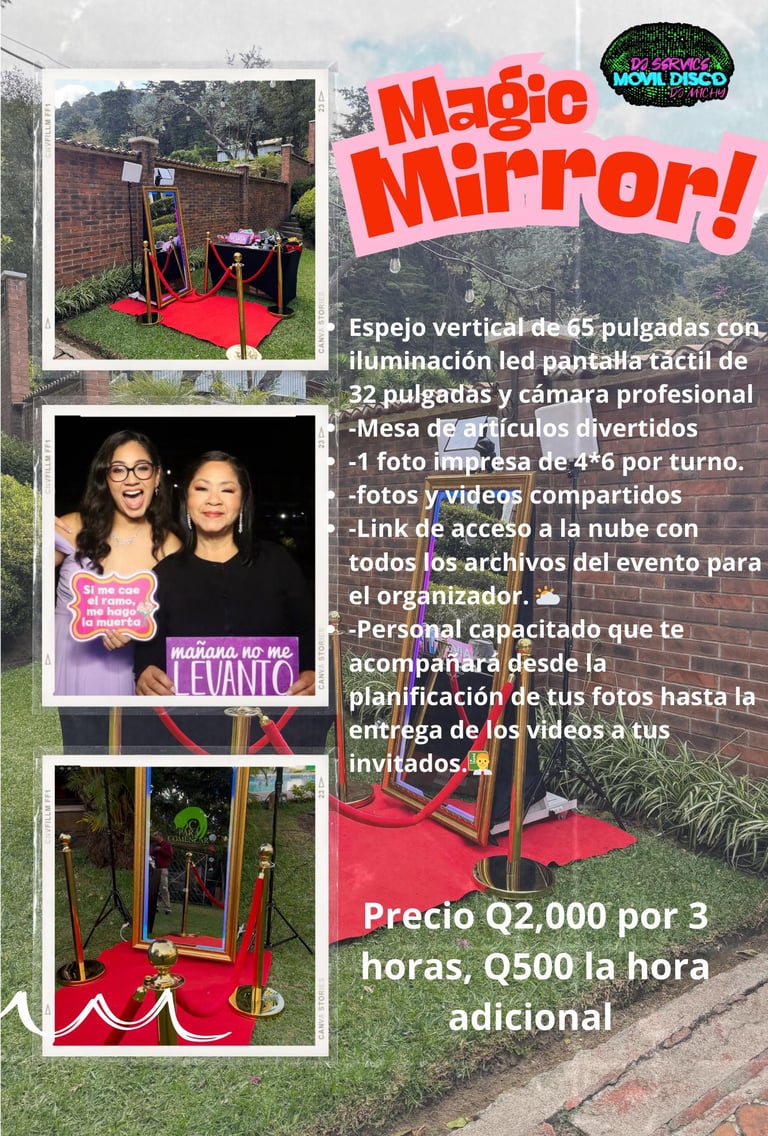 Precio Q6,500.00 hasta 6 horas. Hora extra Q1,000.00
